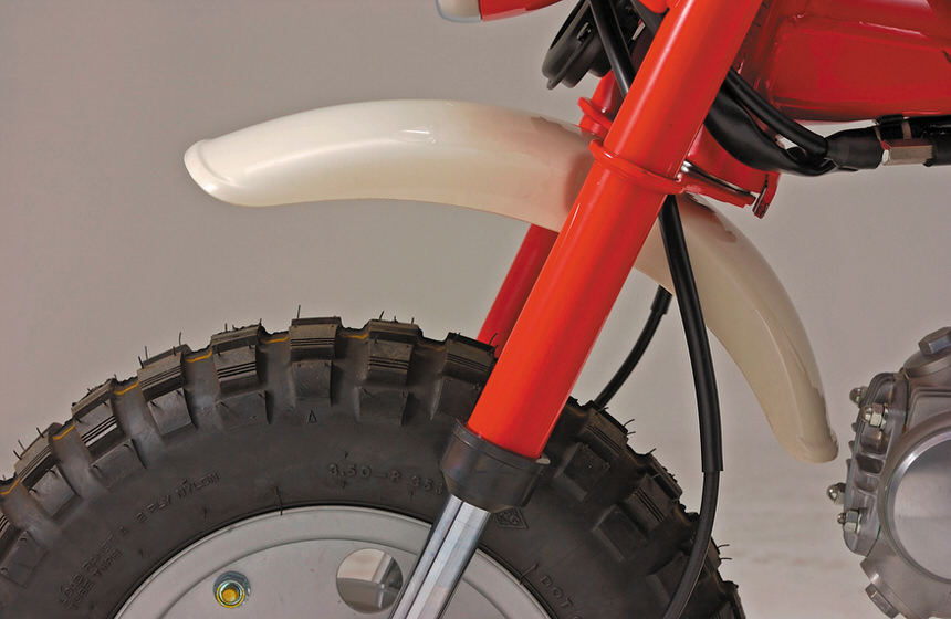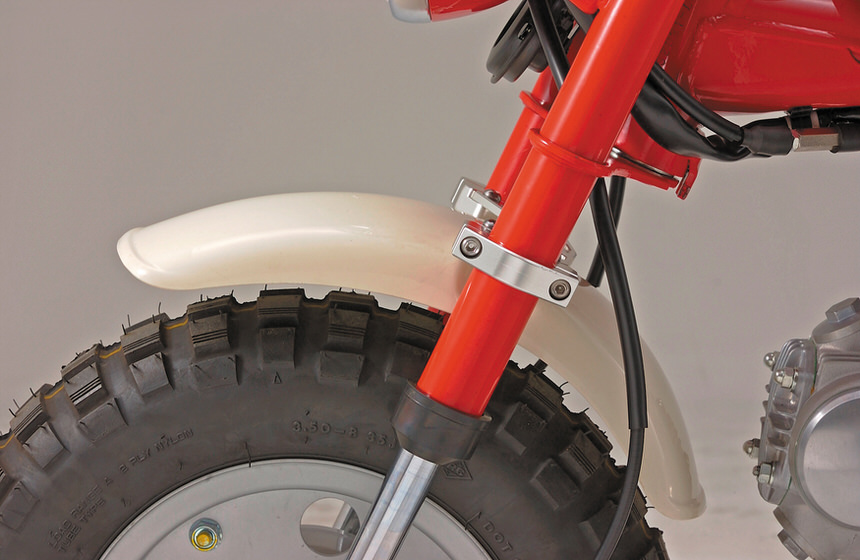 フロントフェンダーの位置を下げることで雨天時の泥ハネも軽減します。フロント回りをゴージャスに演出!モンキー/ゴリラのノーマルフェンダーをアンダーブラケットから下方向に移動し、スタイリッシュなデザインで、フロント回りをゴージャスに演出するクランプキット。泥ハネも軽減します。※オフセットキットを下げすぎると、タイヤとフェンダーが接触します。適正位置にてご使用ください。