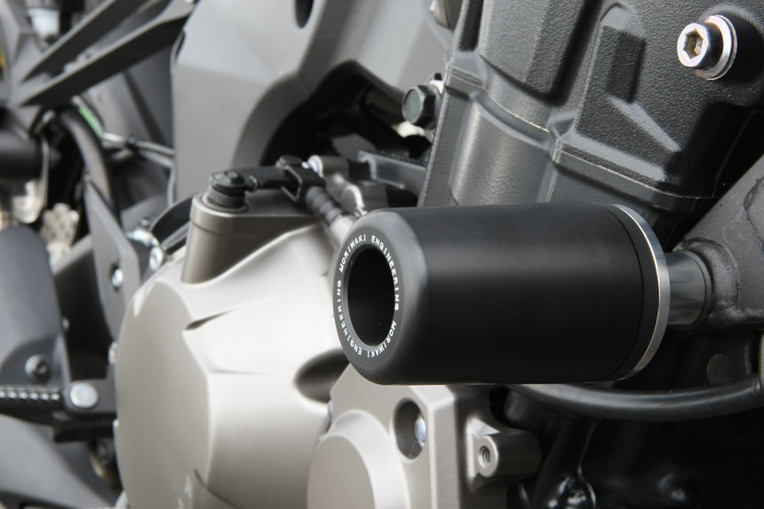 もともとはロードレースで採用していたレース部品で、サーキット走行における激しい転倒で破損するエンジンの負担を少しでも軽減するために開発されたもの。モリワキでは市販化するにあたり、素材や形状、各部の強度などを徹底的に見直し信頼性を更に向上させました。