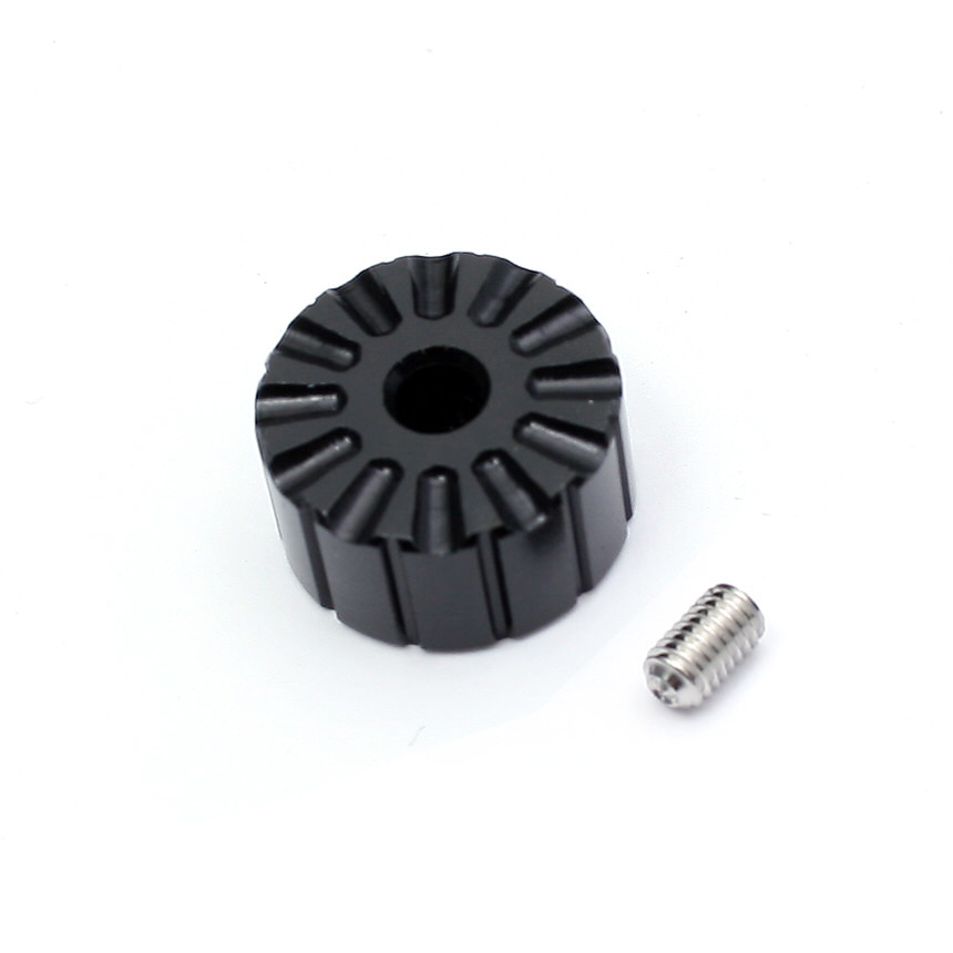 Aマークの刻印が入ったシンプルさが際立つデザイン。純正のダイヤルが樹脂製なのに対し、アルミ削り出しで裏側の細部まで美しい仕上がりに。さらに剛性もアップするため、ダイヤル感にもクイックさが出ます。※取り付け用イモネジ付属。