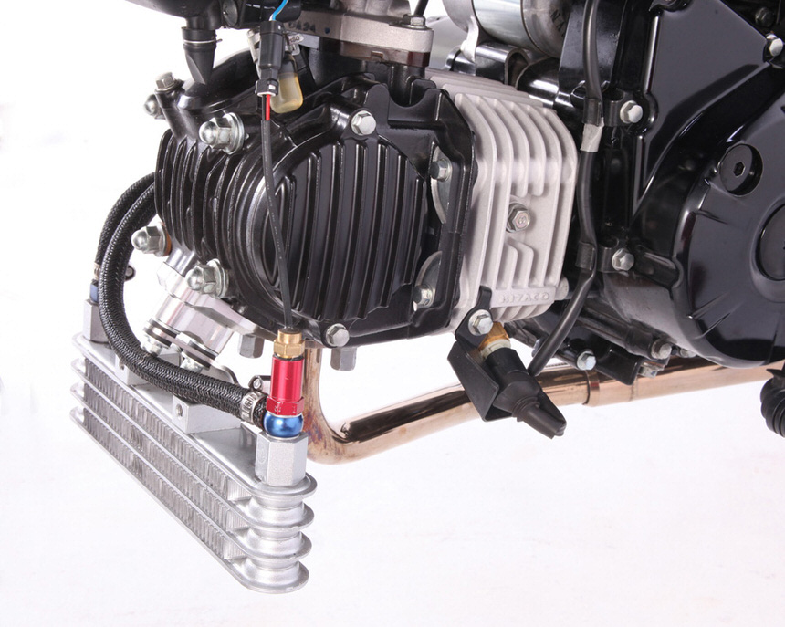 パワーアップしたエンジンの熱対策の必需品。オイルクーラーKITにアップスタイルリリース。ボアアップで高回転、高性能化したエンジンの熱対策の必需品。オイルクーラーはシリンダーヘッドの上部に装着するスタイルを新たにラインナップ。キタコ製ボアアップKIT用タペットキャップ:アルミ削り出しアルマイト仕上げオイルクーラー寸法:幅234×高さ48.5×奥行32(mm)※キタコ製スキッドプレートと併用可※オイル取り出し口はキタコ製164/181cc用シリンダーです。ノーマル/キタコ製133cc用シリンダーは使用不可。※タペットキャップに使用するOリングは再使用します。再使用できない場合は別途ご購入下さい。(ホンダ純正品番:91372-KPH-900)タペットキャップについて放熱効果を上げるために放熱フィンをデザイン、さらにタペットキャップの裏側にはオイルを留まらせて冷やす為の溝加工を施しています。実用性とドレスアップ効果を兼ね備えたアイテムです。