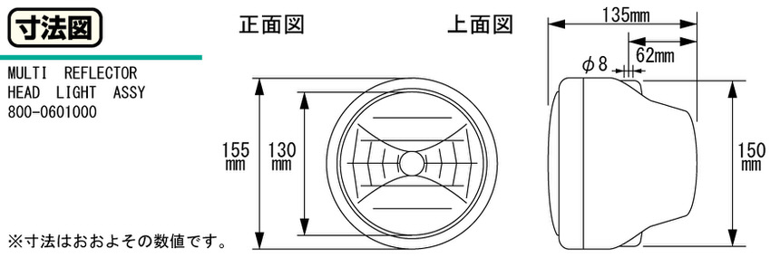 反射板自体が配光機能を持つマルチリフレクターヘッドライトです。無駄な光の拡散を抑える高効率ヘッドライトです。※キタコ製付属のワット数以上の高効率バルブや HID 等を取付けると反射板等が溶解する場合がありますので使用出来ません。ABS樹脂製ブラック塗装仕上げPH-7 12V30/30W ホワイトブルー球付属耐熱樹脂レンズ