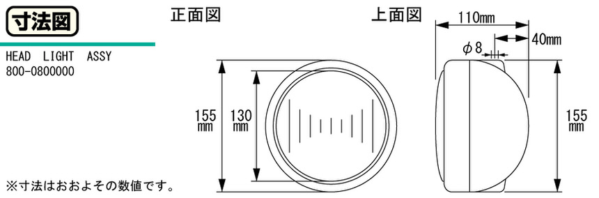 Φ130 ヘッドライトASSY(12V35/35W 球付属) KITACO(キタコ)