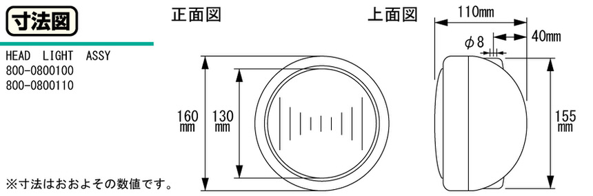 ミニバイクに最適な大きさのヘッドライトです。※6V車に取り付けの際は6V球を購入して下さい。※キタコ社製付属のワット数以上の高効率バルブやHID等を取付けると反射板等が溶解する場合がありますので使用出来ません。H-4 球付属(12V60/55W H-4 球仕様)スチール製クロームメッキ仕上げガラスレンズ
