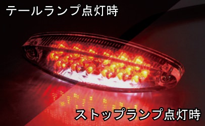 省電力、高効率でバルブ切れの心配も少ない LED ランプをレンズ内に配置しています。輝くように明るく被視認性を向上させます。12V高輝度LED採用ナンバー照明付国産LED採用車検対応