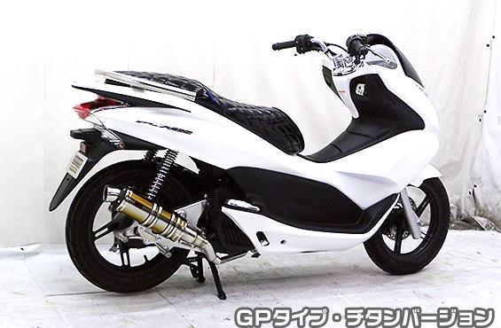 ※受注生産のため、商品のお届けまで2週間程度お時間をいただきます。ご了承くださいませ。※平成22年4月1日より施行された認証制度に適合する認証マフラーではありません。ご理解の程よろしくお願い致します。※eSP(イーエスピー)エンジンモデル用※初期モデル用には取り付けできませんのでご注意下さい。ご注文の際にはお間違えの無いようご注意下さい。PCX150(JBK-KF12)用 DDRタイプマフラー GPタイプ チタンバージョンです。新時代から導き出された究極のイノベーションデザインで非常にインパクトあるマフラーです。サイレンサーは チタンバージョンです。チタンバージョンは軽量高剛性なチタニウム製パイプにレインボーの焼き色を付けた、非常に高級感の高い仕上がりです。【GPタイプ】ブラックアルマイト処理を施したビレットタイプのテールマウントに、シンプルかつレーシーなイメージ消音用のバッフルが2個装備されている【ダブルバッフル仕様】となっており、バッフル無し、バッフル1個装着、バッフル2個装着と3種類の排気音を選べるサウンドセレクトスタイルになっています。バッフルはステンレスタイプとアルミタイプの2種類のバッフルが装備されています。音量はバッフル2個装着時の排気音量が 約85db(法定規制値内音量)、バッフル1個装着時の排気音量が 約87db、バッフル非装着時の排気音量が 約89db です。音質も耳障りな音でなく重低音のサウンドになっていますので、ノーマルマフラーではちょっと物足りない方にオススメです。サイレンサーはストレート構造ではなく隔壁構造になっていますので、音量は静かめに抑えられており近所迷惑になる事無く安心して走行できます。低中速を落とすことなく高回転でスムーズに回り扱いやすい設定になっています。振動防止のためサイレンサーとエキパイが2分割となる安心設計になっています。サイレンサーは、2点止めになっていますのでしっかりと固定でき、耐久性にも優れています。無加工ボルトオンにて装着できますので、必要な工具があれば簡単に取り付けできます。(取り付けに必要なボルト類は全て付属しております。)サイレンサーバンドにはスリットタイプを採用してデザインにもこだわっています。サイレンサーの固定にはサイレンサーバンドを採用し、バフ仕上げを施したステンレス製丸棒で組んだステーを介して固定しておりますので、従来のステーの固定より車体と調和した高級感あふれるマフラーです。オールステンレス製で、エキパイからサイレンサーまでバフ仕上げを施しています。ローダウンにも対応しておりますので、安心してご使用下さい。