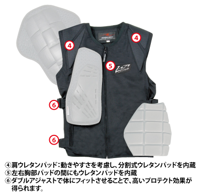 ※本商品カラータイプ:ブラック見た目と違って中身はスゴインです!胸部、脊椎はプラスチックでガード。わき腹にもウレタンパッドを挿入し上半身をフルカバー。すでに購入済みのプロテクション(肩肘脊椎)ジャケットの下に着込むだけで上半身を隈なくガードします。また、ジャケットを着込むのが苦痛な夏場などはシャツの上から気軽に羽織って、急所をプロテクトできます。MATERIAL:表地/メッシュ、プラスチックパッド、ウレタン 裏地/メッシュ
