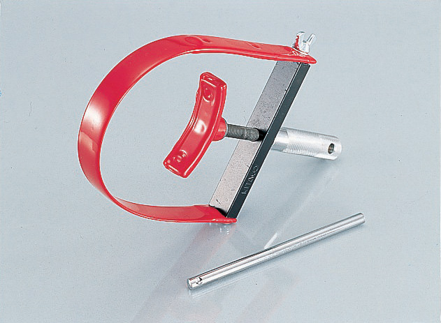ドライブフェイス、クラッチアウター等の脱着時に必要な工具です。付属のシャフトを使用して締め付ける事で無理なく確実に固定できます。また径の小さい物はバンドの調整穴を移動させることにより固定可能です。Φ60~Φ120程度まで使用可能。