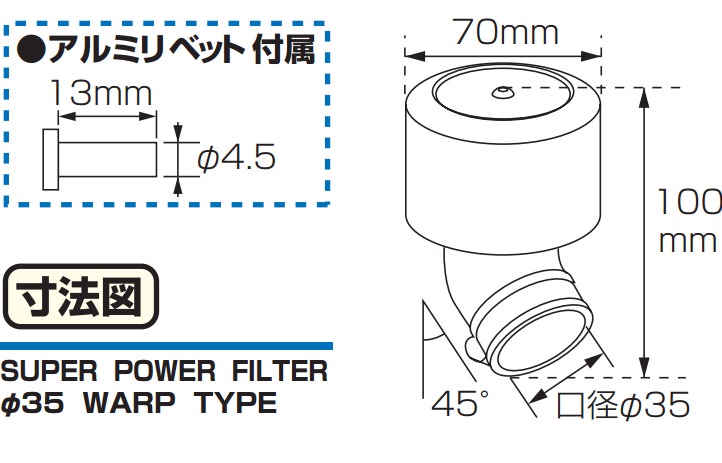 スーパーパワーフィルター(ワープ45°)Φ35 レッドアルマイト KITACO(キタコ)