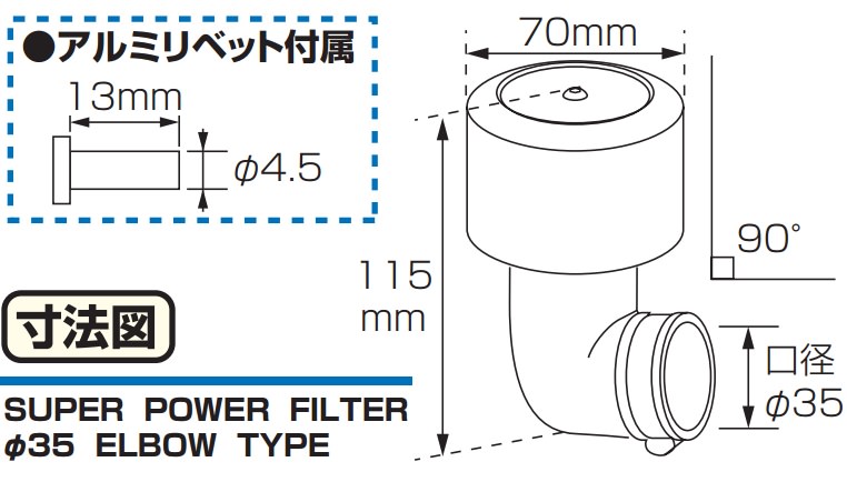 スーパーバワーフィルター(エルボ90°)Φ35 クリアピンク KITACO(キタコ)