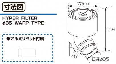 ハイパーフィルター(ワープ45°)Φ35 ブラックアルマイト KITACO(キタコ)