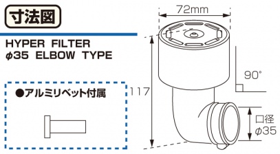ハイパーフィルター(エルボ90°)Φ35 ブラックアルマイト KITACO(キタコ)