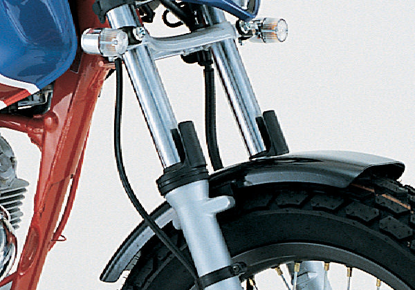 フロントフォークのインナーチューブを飛び石や汚れから守るフォークガードです。各種取りそろえていますので、フォークのドレスアップにも最適です。タイラップで固定する汎用タイプ、ミニバイクからビッグバイクまで装着可能。2ヶ1SET