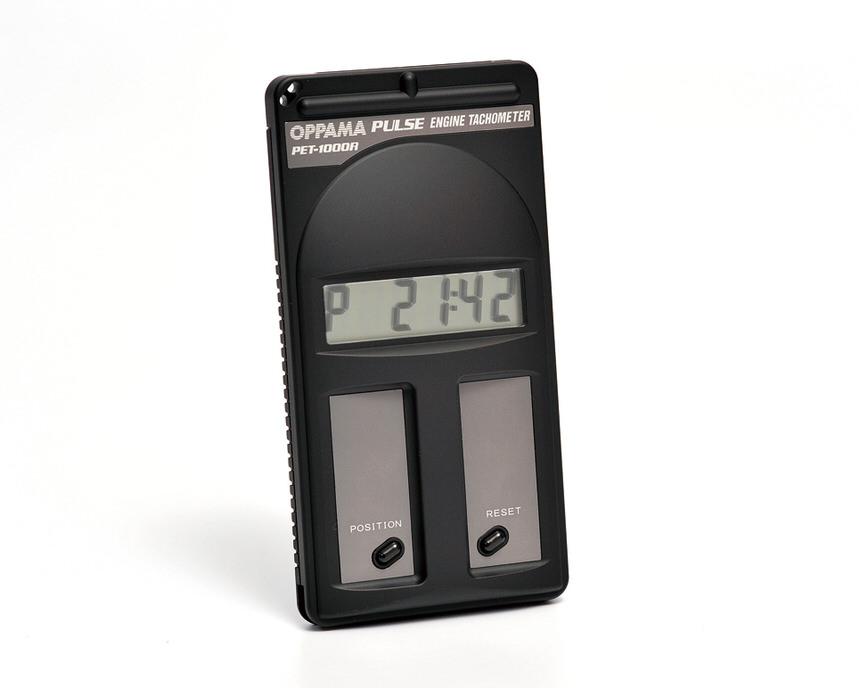 エンジンのプラグコードに近づけるだけで回転数が計測できます。厚さ13ミリだから胸のポケットに入れても膨らまないハンディタイプのタコメーターです。PET-1100Rは計測ポジションが多数ある凡用タイプです。※必要に応じて付属のアンテナリード線を接続しても計測可能です。計測方式:パルスカウント方式回転数表示間隔:0.5秒精度:±10rpm電池寿命:約20000時間寸法(L×W×H):120×62×13mm本体重量:73g付属品:アンテナリード線・吊りひも※4ストローク車1気筒車は1回転1発火(モンキー等)に限ります。2回転1発火(FI車)は計測不可