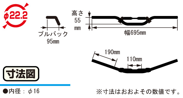 パワーテックバー ロータイプ(Φ22.2) KITACO(キタコ)