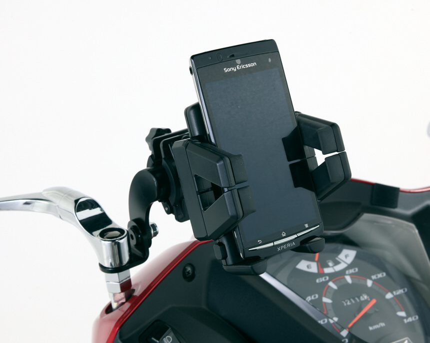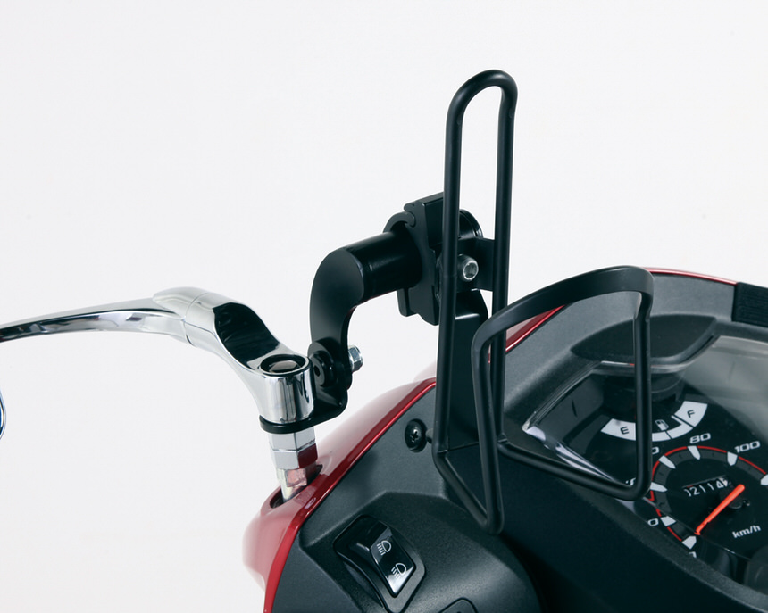 Φ22.2ハンドルクランプ対応モバイルホルダー、ドリンクホルダー等の市販ホルダーを固定できるバー付きステーです。(各種ホルダーは付属しておりません)スチール製ブラック塗装仕上げ耐荷重量:500g※車輌により別途ミラーアダプターが必要な場合があります。