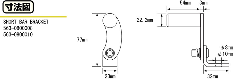 ショートバーブラケット ブラック M8穴取付用 KITACO(キタコ)