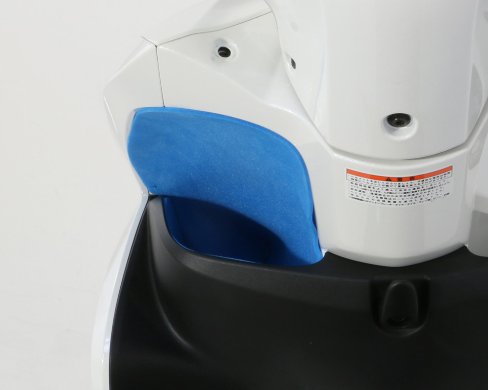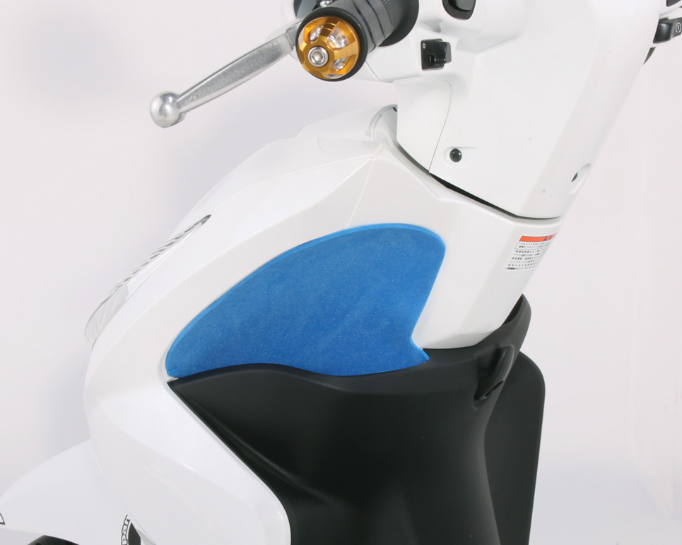 ※画像中ブルーの商品になります。走行中の振動をクッションが吸収フロントポケットを覆うクッションです。このパステル調クッションが走行中の振動を和らげ守ってくれます。装着方法は、折り紙を折る様にスポンジシート(左)を指定の形に織り、ポケットに入れポケット内の形状に押し広げ完成。発泡ポリエチレン製スポンジ厚:5mm両面テープ貼り付けタイプ左側フロントポケット用