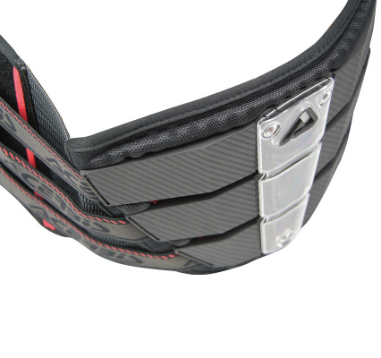 ポリウレタン+樹脂製フレームをメインベルトと両サイドのアジャストゴムベルトでホールド、抜群の装着感を実現したプロテクションウエストベルト。ベンチレーションも充実、装着時のムレを軽減します。