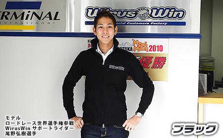 左胸に「WirusWin RACING」背中襟下に「WirusWinフェイスマーク」の刺繍が施されています。