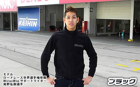※商品発送迄2週間程度いただく場合がございます。ご了承くださいませ。素材はポリエステル100%。生地の厚さ6.9ozで、両面起毛です。柔らかい素材感に仕上げたフリースジャケット。保温効果が高く1枚で暖かいです。左胸に「WirusWin RACING」背中襟下に「WirusWinフェイスマーク」の刺繍が施されています。背中右裾には「WirusWin RACING」のレザーパッチをあしらっています。フロントジッパーは首元までしっかり留められます。両サイドのポケットが付いており小物等の収納も便利です。ポケット、袖、裾部分はニットバインダー仕様になっています。WirusWinステッカー付属。