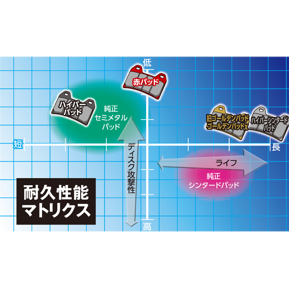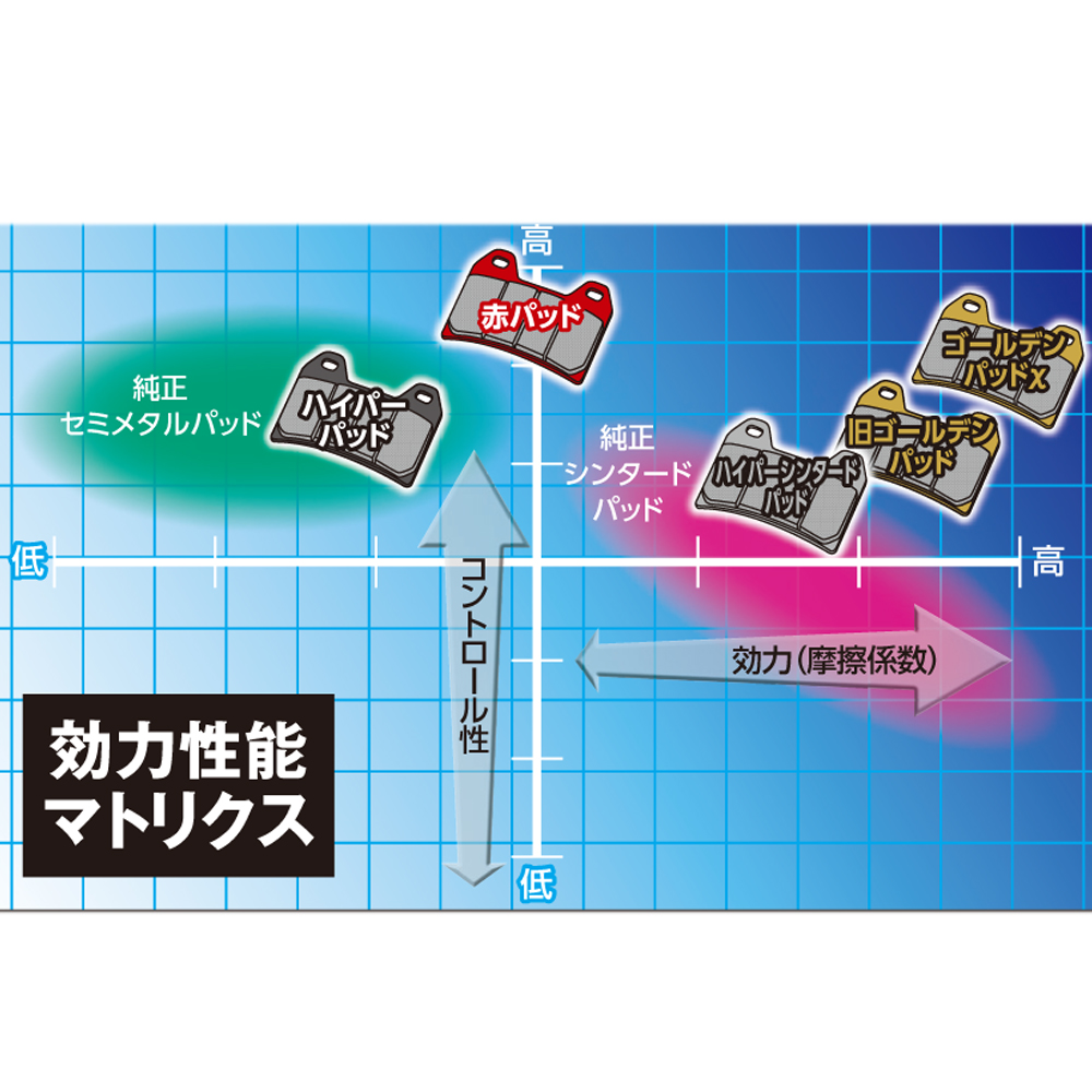 ※ゴールデンパッドおよびハイパーシンタードパッドは鋳鉄ローターに絶対使用しないでください。