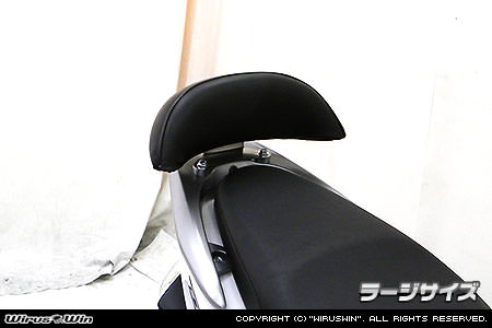 ※受注生産のため、商品のお届けまで2週間程度お時間をいただきます。ご了承くださいませ。他社メーカーに比べ大型のバックレストを使用していますので、パッセンジャーを快適かつ安全にサポートしてくれます。オリジナルバックレストは型から興して製作していますので、見た目も良く耐久性に優れたしっかりとした作りになっています。表面素材にはノーマルシートと似たシート生地を使用していますので、取って付けて感じは無くとても自然にマッチします。ラージサイズが従来通りのサイズで目安として250cc以上の大柄なビッグスクーター向けです。装着はバックレスト専用ステーをボルト2本で固定するだけですので、比較的簡単に取り付けできます。ステーの材質は耐久性、耐食性の高いステンレス製です。ウイルズウィンステッカーも付いています。シンプルにカスタムしたい方、低予算でタンデム強化したい方などに特にお勧めです。