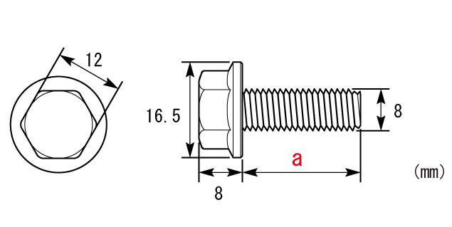 フランジ付き六角ボルト(ステンレス) M8 P1.25 全ネジタイプ a25mm KITACO(キタコ)