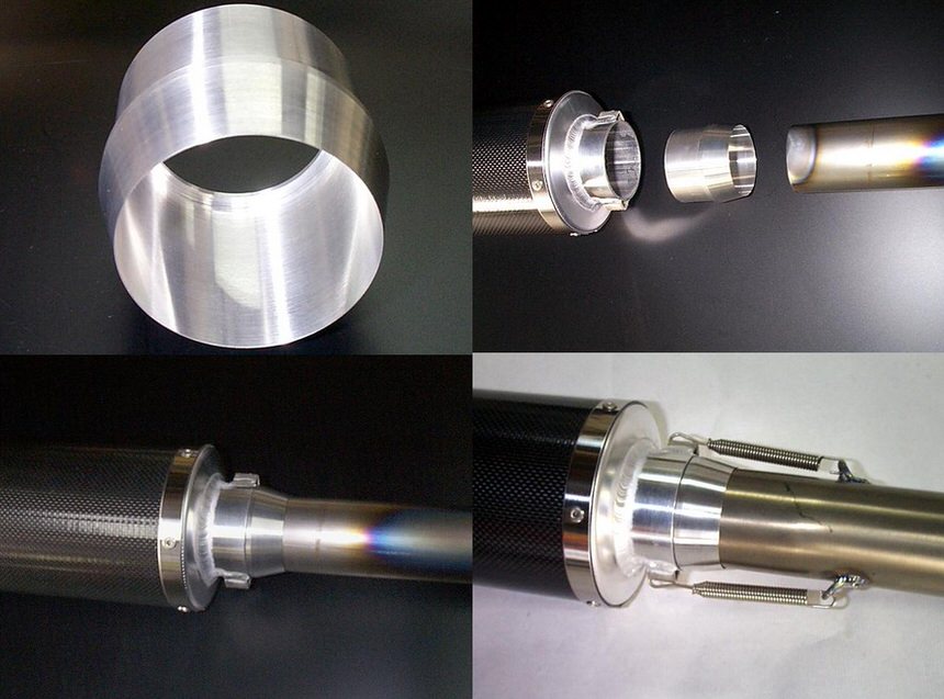 これで溶接無くても好みのサイレンサーが着いちゃうぞ。テールパイプの外径をこれで変換。Φ52(Φ50~Φ55まで1ミリ刻みでラインナップ)⇒60Φに変換(アルミ製)インナーバッフル併用をお考えの方は、インナーバッフルはテールパイプのサイズにてご注文ください。テールパイプに装着後にその上にΦ60化アダプターをかぶせご利用できます。