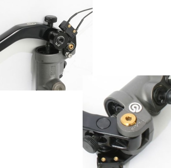 bremboマスター一般的なマスタースイッチは、レバー調節のたびに、工具を使用し固定ボルトを緩めることでスイッチ調整しなければなりませんでしたが、本製品は工具を使用せずにある程度の調整を簡単に行える新機構を搭載しています。ブレンボマスターシリンダー用スイッチキット付属のピボットピンにはゴールドカラーを採用。マスターシリンダーにワンポイントのアクセントを入れることにより、より高級感を演出します。タイプ:クラッチシリンダー径:Φ19/Φ16対応マスターシリンダー:brembo Φ19×20/Φ19×18/Φ16×18モデル:ユニバーサルモデル