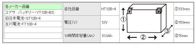 HT12B-4 液入り充電済 HighPowerバッテリー メンテナンスフリー(YT12B-BS・GT12B-4互換) T・K-corporation ドラッグスター400/クラシック VH01J・4TR