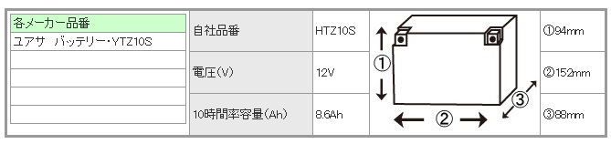 HTZ10S 液入充電済 HighPowerバッテリー メンテナンスフリー(YTZ10S互換) T・K-corporation CBR929RR(〜00年・00〜01年)
