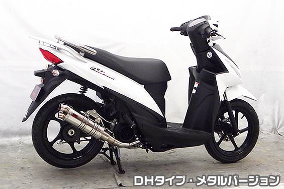 ※受注生産のため、商品のお届けまで2週間程度お時間をいただきます。ご了承くださいませ。※平成22年4月1日より施行された認証制度に適合する認証マフラーではありません。ご理解の程よろしくお願い致します。イノベーションデザインで非常にインパクトあるマフラーです。メタルバージョンはステンレスをバフ磨きでピカピカに仕上げています。排気口は大小2本出しでステンレス削りだし部材を採用したDHタイプ。消音用のバッフルが2個装備されているダブルバッフル仕様となっており、バッフル無し、バッフル1個装着、バッフル2個装着と3種類の排気音を選べるサウンドセレクトスタイルになっています。バッフルはステンレスタイプとアルミタイプの2種類のバッフルが装備されています。音量はバッフル2個装着時の排気音量が約84db(法定規制値内音量)、バッフル1個装着時の排気音量が約86db、バッフル非装着時の排気音量が約88dbです。音質も耳障りな音でなく重低音のサウンドになっていますので、ノーマルマフラーではちょっと物足りない方にオススメです。サイレンサーはストレート構造ではなく隔壁構造になっていますので、音量は静かめに抑えられており近所迷惑になる事無く安心して走行できます。低中速を落とすことなく高回転でスムーズに回り扱いやすい設定になっています。振動防止のためサイレンサーとエキパイが2分割となる安心設計になっています。サイレンサーは、2点止めになっていますのでしっかりと固定でき、耐久性にも優れています。無加工ボルトオンにて装着できますので、必要な工具があれば簡単に取り付けできます。(取り付けに必要なボルト類は全て付属しております。)サイレンサーバンドにはスリットタイプを採用してデザインにもこだわっています。サイレンサーの固定にはサイレンサーバンドを採用し、バフ仕上げを施したステンレス製丸棒で組んだステーを介して固定しておりますので、従来のステーの固定より車体と調和した高級感あふれるマフラーです。オールステンレス製で、エキパイからサイレンサーまでバフ仕上げを施しています。ローダウンにも対応しておりますので、安心してご使用下さい。