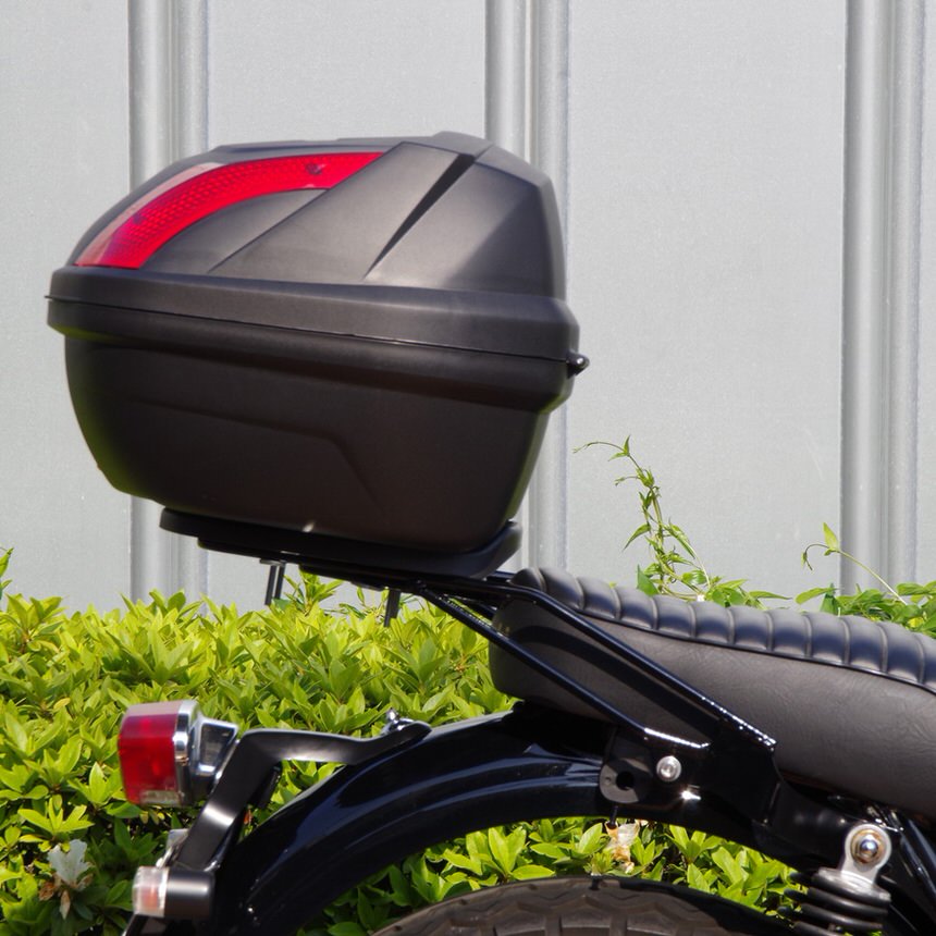 ※一部の車種に取りつけする際、リアボックス付属のボルトが長すぎる場合があります。この場合ボルト加工および別途ボルトをご用意ください。セット内容:リアキャリア本体×1、ツーカラーズレンズリアボックス エクスクルーシブ 32リットル×1、取り付けに必要な台座・ネジ類が付いたフルセット。更にセット販売だけの限定特典 リアボックスインナーを付属します。スチール製リアキャリア 最大積載量:5キロ。リアボックス容量)大きさ:31リットル。縦:47cm×横:47cm×奥行き:42cm。