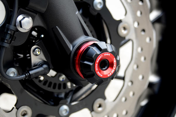 メーカー品番:AS-A01A03-TM万が一の転倒時にアクスルシャフト部分を保護します。高強度アルミニウム合金素材(A6061-T6)削り出し、カラーアルマイト仕上げの本体とヘッド部のみPOM(ポリオキシメチレン)を採用し、高いデザイン性と機能性を両立したスライダーです。