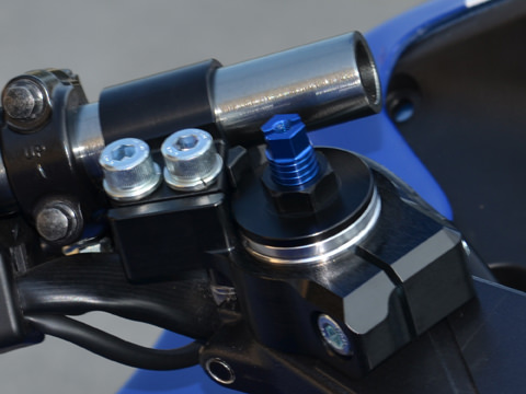 A2017材総削り出し、A7N01材ハンドルパイプの3ピース構造のCBR250R用レーシングハンドルキットです。レーシングポジションを形成する適切なハンドルポジションを実現いたしました。ライダーの集中力を邪魔しないブラックは、ステムともマッチします。ハンドルバーは左右位置決め穴付きです。