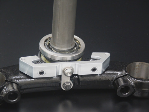 CBR250Rのレース専用ハンドルストッパー。適切な切れ角は転倒時の車両のダメージ最小限に抑え、ライダーがハンドルとタンク、カウリングと挟まれるのを防ぎます。ランニングコスト低減のためアルマイト処理などはぜず機能性と低価格を追求いたしました。レース専用パーツのためハンドル切れ角が制限されますので街乗りには使用しないで下さい。