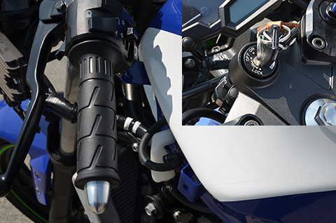 NINJA250用アルミ削り出しハンドルツットパー。タンクとハンドルのクリアランスを30mm以上確保しながら、キーロックもできる優れものです。転倒時ハンドルの切れ込みを抑えることによりマシーンとライダーのダメージを軽減いたします。