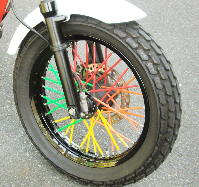 ※1セット:40本入り/210mm※PVC製カラー:レッドスポークに被せるだけで大胆にデコレーション出来る優れもの。ドレスアップ効果はもちろん、スポークの保護としての役割も。またスポークの汚れ隠しにも・・。1輪分として40本のセット。組み合わせによって更に遊び心に溢れた仕様にできます。車輌に合わせてカットして調整して使用します。切れ込みが有るので、装着も簡単。