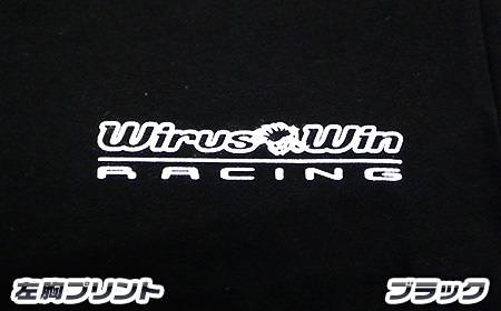 左胸に「WirusWin RACING」左袖に「WirusWinキャラクター」背中襟下に「WirusWinフェイスマーク」のプリントが施されています。