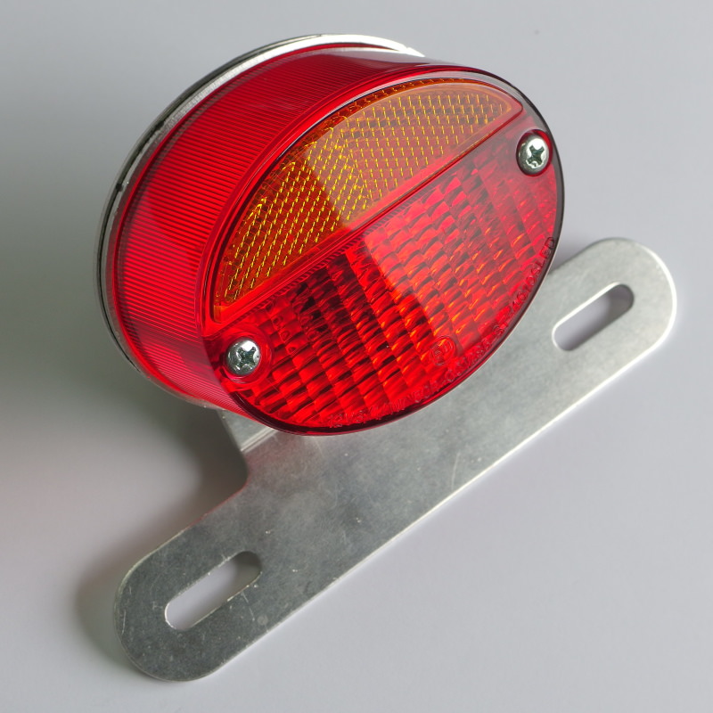 電球仕様12V23/8W球付、BKT付ランプ取付ビスピッチは80mm。リフレクター色がアンバーのUS仕様カラーです。