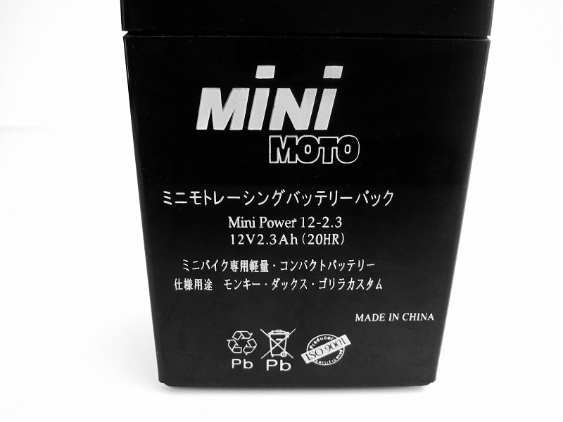 12VMFシールドバッテリープレミアムパック6V→12V化コンバート化に有効なバッテリーです。モンキー6Vバッテリートレイに”すっぽり”と収まるサイズ(縦置きが可能!)。コンバートキット付属バッテリー1.5Ah⇒当製品2.3Ahのため、約3割以上に容量アップ。【特徴】コンバートキット付属バッテリー1.5Ah⇒当製品2.3Ahのため、約3割以上に容量アップ容量アップによる絶対的な信頼性の向上と安定した電流効率を約束します液体入り充電済みバッテリー・二輪車用制御弁式鉛蓄電池(MFシールドバッテリー)高い信頼性と高性能極板組成の特殊構造により自己放電が少なく、容量保持特性が高いバッテリーです※12V化コンバート時に以下記載車両への流用が可能です。コンバートキット購入時のバッテリー配線をそのまま再利用することができる110型ターミナルを採用!Z50AZ50Z4Lモンキー5Lモンキーゴリラダックスシャリィ【仕様】サイズ 70(幅)x41(厚み)x97mm(高さ、端子は含まない)定格容量 12V2.3Ah容器材質 ABSメーカーおよび生産国:ミニモト中国製