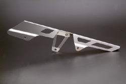 アルミ製で軽量、高強度なチェーンケース。樹脂製の物よりも金属質でメカニカルな印象に。車検対応となっております。