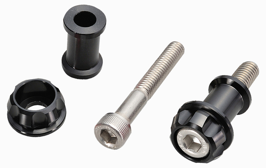 ステンレス製キャップボルトM6×40、2個付属、アルミ製ブラックアルマイトカラー、2個付属2個入り※ナットは付属しておりません※使用状況によりボルトの長さが足りない場合は別途ご用意ください。カラー:ブラック