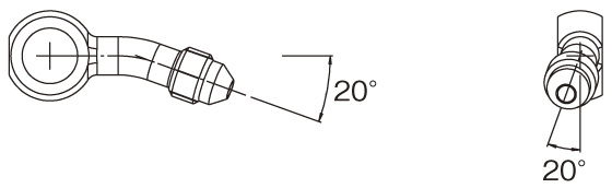 【画像NO】220° 右ひねりノーマルブレーキホースに見られるように、バンジョーアダプターにひねりを持たせています。ビルドアライン ユニバーサルホースとバンジョーボルトとの組み合わせで、自由にホースを組むことができます。【仕様】角度:20°ひねり方向:右ひねり
