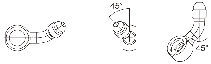 ※画像はイメージとなります。カラーはブラックです。【画像NO】345° 左ひねりノーマルブレーキホースに見られるように、バンジョーアダプターにひねりを持たせています。ビルドアライン ユニバーサルホースとバンジョーボルトとの組み合わせで、自由にホースを組むことができます。【仕様】角度:45°ひねり方向:左ひねり