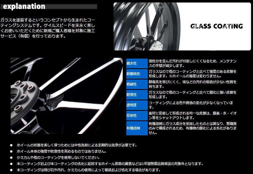 【商品タイプ】Type-GP1S(アルミニウム)鍛造ホイール【カラー】半ツヤブラック【特別仕様】ガラスコーティング仕様【サイズ(フロントorリア)】3.50-17(フロント用)1本単位の販売商品となります。前後セットではございません。国内外のレースシーンで多くの表彰台を飾るゲイルスピードレーシングホイール「TYPE-GP」のストリートモデル。独自の切削加工が施された5本スポークで構成され、しなやかさを保ちながら高剛性と軽量化を高次元で実現しています。ホイールの交換はインチダウンを含めて、操縦安定性・制動特性が変化します。ご自身の体が変化に慣れるまでは十分にご注意ください。車種によっては別途パーツが必要な場合があります。メーター補正にはアクティブ製デジタルモニターをおすすめします。ミクロ単位の石英ガラス(水晶:クォーツ)のコーティングを施工した商品仕様になります。
