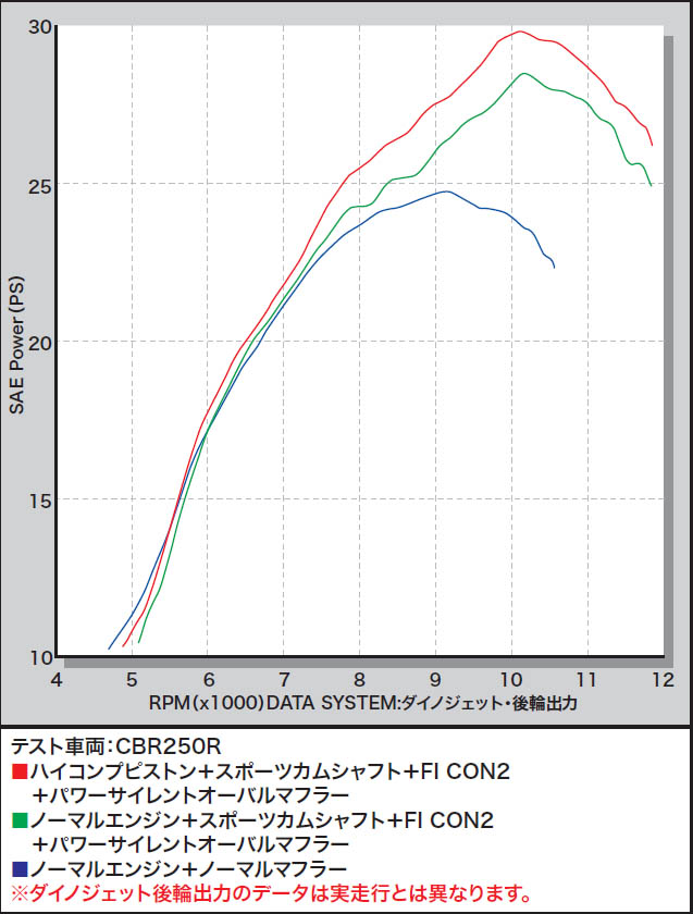 パソコンなどによる面倒なデータ入力の必要が無く、本体のロータリースイッチの切替えにより、簡単に設定変更が出来るSP武川独自開発のインジェクションコントローラーです。SP武川製カスタムパーツに合わせてセッティングされた3次元補正マップを各種内蔵しており、車両の仕様に合わせて設定出来ます。内蔵の補正マップを全体的に濃い目・薄い目に本体のロータリースイッチで微調整出来る増減機能も備えています。FI CON2は燃料噴射量の補正だけで無く、レブリミッターカット機能を備えています。ノーマルピストン、ハイコンプピストン仕様時のレブリミット回転数:12000rpmFI CON2には専用ハーネスCOMP.が付属し、最小限の配線加工で取付け可能です。※クローズドコース専用になります。 ※純正ECUのレブリミット回転数を越えることが出来ますが、メーカー純正のレブリミットを超える使用方法になる為、自己責任でご使用下さい。※FI CON2は日本仕様として正規販売されている車両でのみ動作確認を行っています。並行輸入車への対応は確認しておりません。 ※社外品のH.I.D.キットはデジタル回路に悪影響を与える高電圧ノイズが出る為、同時装着しないで下さい。※社外品の点火装置は点火電圧アップに伴う、放射ノイズの増大により誤作動や故障の原因となりますので同時装着しないで下さい。