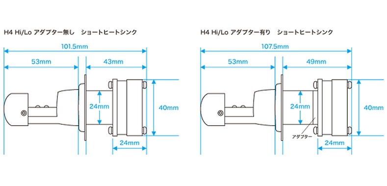 安心の車検対応品!最高光度は車検適合基準値である15,000カンデラを楽々クリアしています。添付の日本車両検査協会発行の成績書に最高光度が記載されています。本製品は車検対応ですが、光軸調整不良、経年劣化によるヘッドライトレンズ面の汚れやくもり、灯体内リフレクターのメッキ剥がれ、純正以外の社外ヘッドライトユニットへ取付けされた場合などは、車検時のヘッドライト検査の際に不合格と判定される場合がございますので予めご了承ください。長寿命!ノーマルのハロゲンバルブはもちろん、H.I.D.より更に長寿命です。省電力設計!消費電力はH4/H4-Rタイプが30W、H7タイプが20Wですので、一般的なH4ハロゲンバルブ(12v 55/60w)より省電力です。信頼のCREE社製LED採用!発光体には耐久性、信頼性の高いCREE社製XLamp XP-L LEDsを使用しています。Hi/Lo切り替え!H4/H4-RタイプはHiビーム、Loビームにそれぞれ3個のLEDを配置してHi/Lo切り替えが可能です。取付け簡単!バルブカプラー差し替えで配線が簡単です。いきなり明るい素早い点灯!HIDと違い電源投入直後からフルパワー点灯します。またHIDのように徐々に発光色が変化する事がありません。ショートヒートシンクタイプバルブ形状:H4 Hi/Lo定格電圧:DC12V消費電力:30W色温度:6000K使用LED:CREE社製 XLamp XP-L LEDs発光部のメーカー型式:LB4