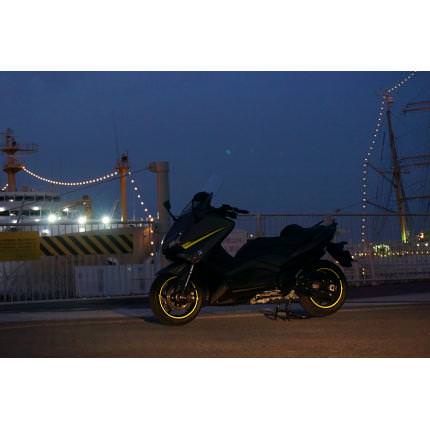 ※カラーサンプルは色彩イメージとなりまして、実際のお届け商品と色味が異なる可能性がございます。赤と黒のYZF-R25には貼られているリムステッカーが、青にだけ貼られていないため、本商品を作りました。リムステッカーのサイズ選定の際は1mmずつ幅を変えたものを貼り、最終的には車体デザインとのバランスが良かった4mm幅に決定しました。貼るだけでよりレーシーな雰囲気を醸し出します。またリム部分は乗るうちに小傷が増えていきます。リムステッカーを貼り付けることで物理的にリム表面を保護するため、小傷防止にもつながります。こちらの商品で車輌1台分の貼り付けが可能です。また予備のシールを4本おつけします。イラスト入りの貼り付けマニュアルが付属します。ステッカー素材の特徴:素材には柔軟性に富んだTOYOCHEMのダイナカルシリーズを使用しています。耐候性(屋外耐候性5~7年)に優れるため、雨の日もバイクに乗る方や、野外に駐輪する方も安心してご利用いただけます。夜間対向車などのヘッドライトで反射する「リフレクターシート」タイプがラインナップに加わりました。こちらのシートは過酷な気象条件で、優れた視認性と判読性が要求される交通標識などにも使われ、日本だけでなく世界の様々な地域で使用されています。また野外耐候性7年と高い耐久性を持っており、視認性(安全性)の向上とドレスアップ、リムステッカーに最適な素材です。カラーは白色単色設定となっております。