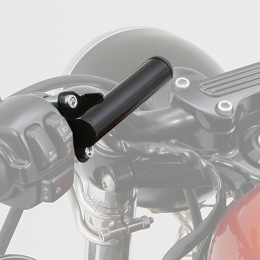 ハンドル周辺の装着物(ナビ、スマートフォン、ETC、レーダー、シガーソケット、ドリンクホルダー、スイッチ等)の取り付けに便利なマルチバーホルダーマスターシリンダークランプタイプにフラットタイプが登場。